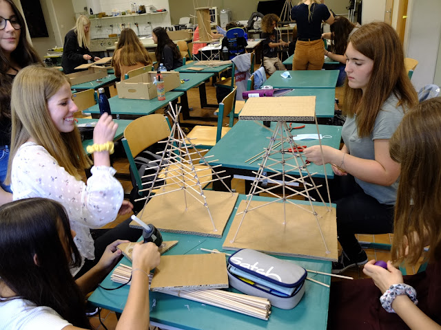 Ausgehend von einer ästhetisch-architektonischen Analyse des Eifelturms in Paris haben wir uns im Kunstunterricht intensiv mit verschiedenen Turmkonstruktionen auf der ganzen Welt beschäftigt und danach luftige Gebilde aus Karton und Holzstäben entworfen.